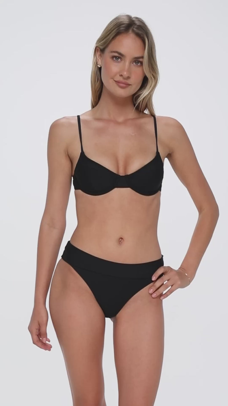 The Laura Fold Over gives you two looks in one! Worn up, she gives a retro mid-rise look for sleek support. Flip the fold and she goes from polished to playful in a single swipe. She's got comfort and style for every wave.