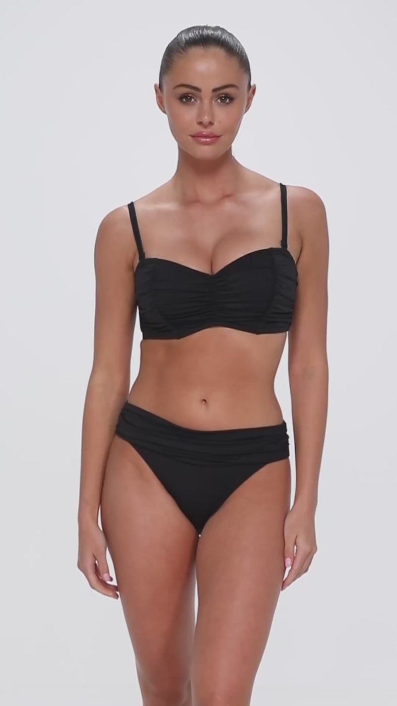 The Loretta Bandeau blends form and function. Flattering shirring along the seams sculpts your curves. Underwire gives confident support. Removable straps transform the look to a stunning-yet-secure bandeau in seconds. It's modern, minimal, and undeniably chic.