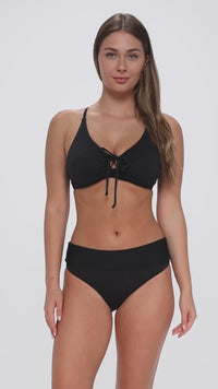 A versatile bottom that gives you options! the Capri High Waist offers two distinct silhouettes: the soft waistband can be worn as a classic high-waist or folded down for a more relaxed mid-rise fit. Featuring shirring at the hips for a flattering and chic accent.