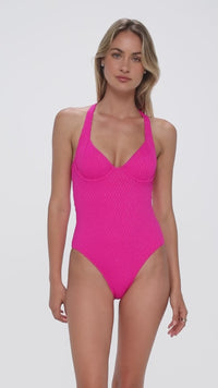 The Mazzy One-Piece makes a modern entrance! Smooth lines meet supportive underwire for a structured look and gentle lift. With adjustable straps and a streamlined, full-coverage cut, this is the ultimate one-piece.