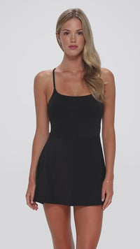 Dive into sporty chic with our versatile, tennis-inspired swim dress. The Naomi Swim Dress is designed for both style and function—featuring adjustable straps and a j-hook for a customizable fit, a built-in shelf bra with removable cups, and integrated shorts with a pocket to keep your essentials close by. Equally suited to a swim or a game of pickleball, this swim dress combines athletic flair with swimwear practicality.
