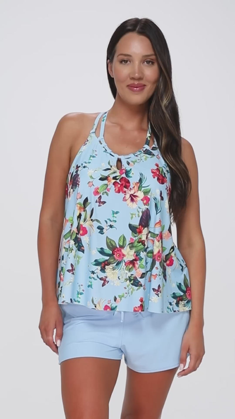 The Sadie Tankini has a flowy A-line silhouette and a high neckline. With soft cups and adjustable straps that can be converted to a crossback, this swim tank is ideal for anyone seeking comfort and style.