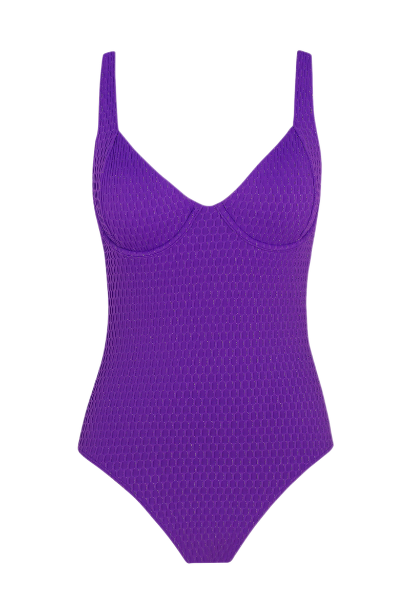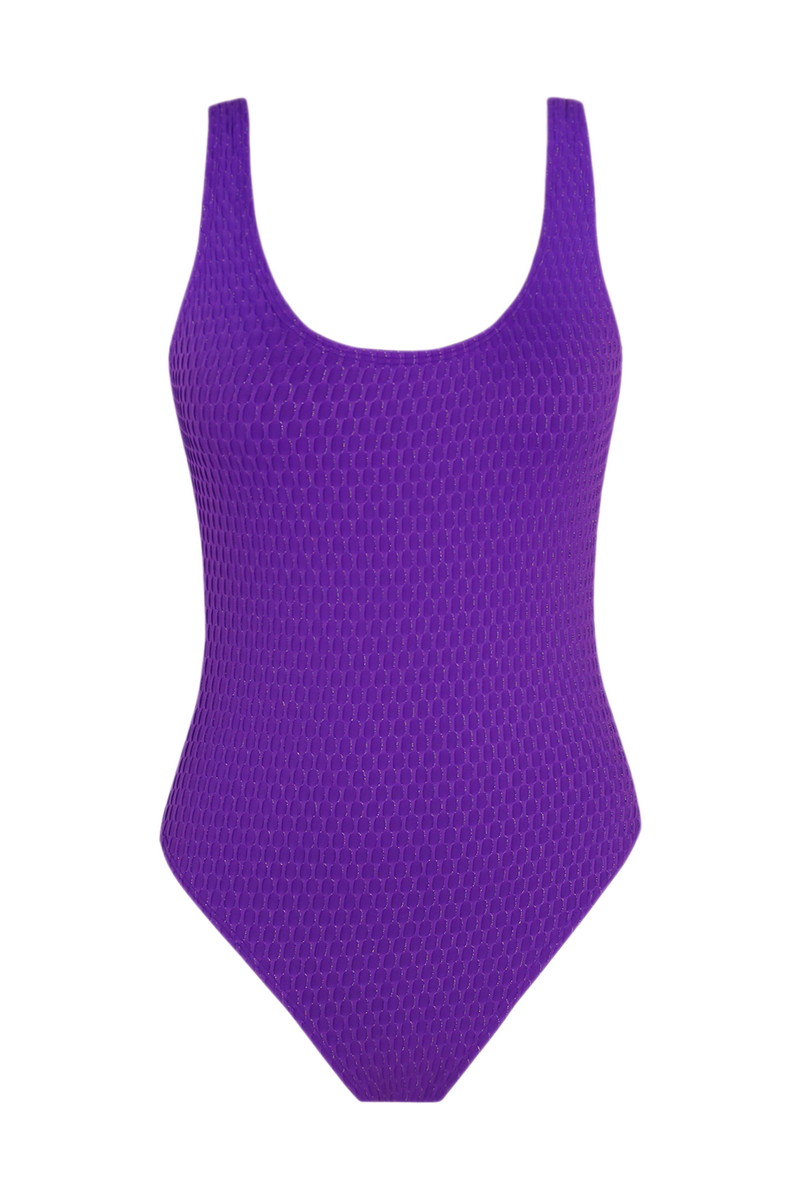Purple Gem fuses rich violet tones with fine silver lurex for depth that moves. Its honeycomb texture reflects dusk over the ocean.