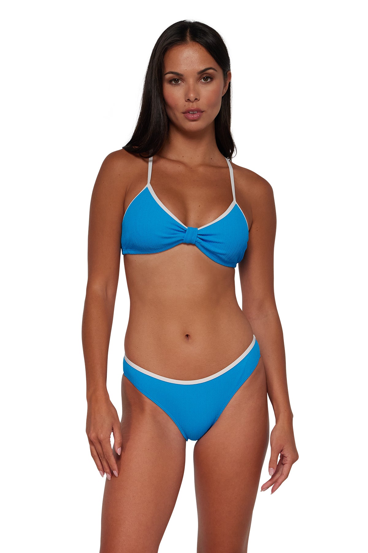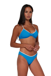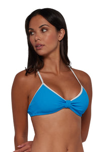 The Indie Bralette with Trim adds a flirty twist to your favorite bikini, with a shirred tab front and white contrast binding. An adjustable crossback tie completes the look for a vibrant fusion of contemporary style and comfort.