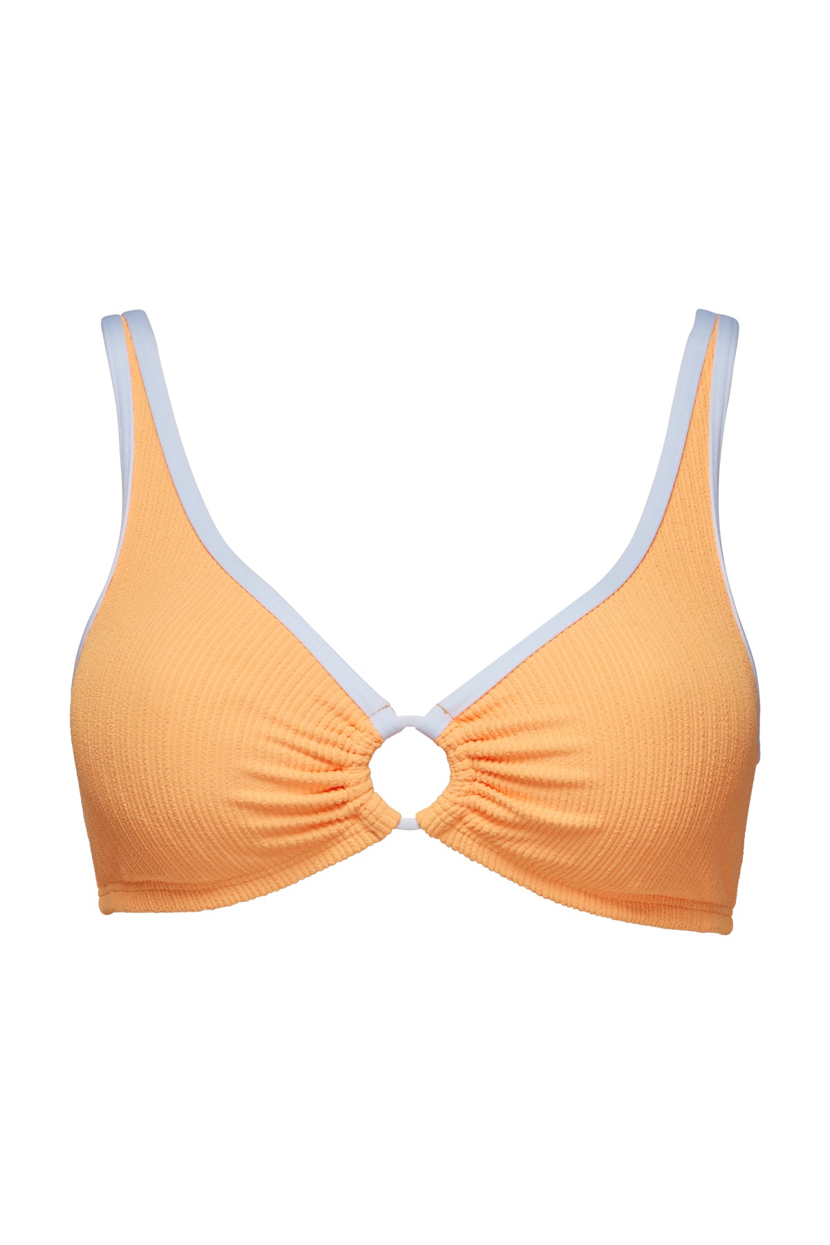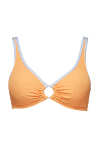 There's nothing better for your beachside adventures than the Oceana Top with Trim! Contrast binding meets in a shirred O-ring for a flattering and flirty look with a splash of support. This top has a hook back closure, adjustable straps, a J-hook, and removable cups for your comfort.