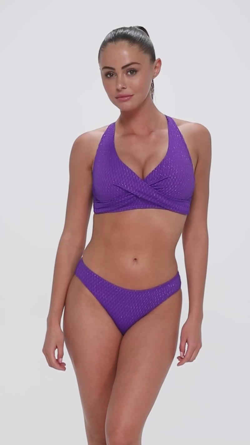 The Mirabella Top features an alluring V neckline and so many options for support: wide straps for ample coverage, a hook back closure, adjustable straps that convert to a crossback, underwire, and removable cups. With shirring on the bust for a soft, subtle touch, this bikini is an easy wear that doesn't compromise on style.