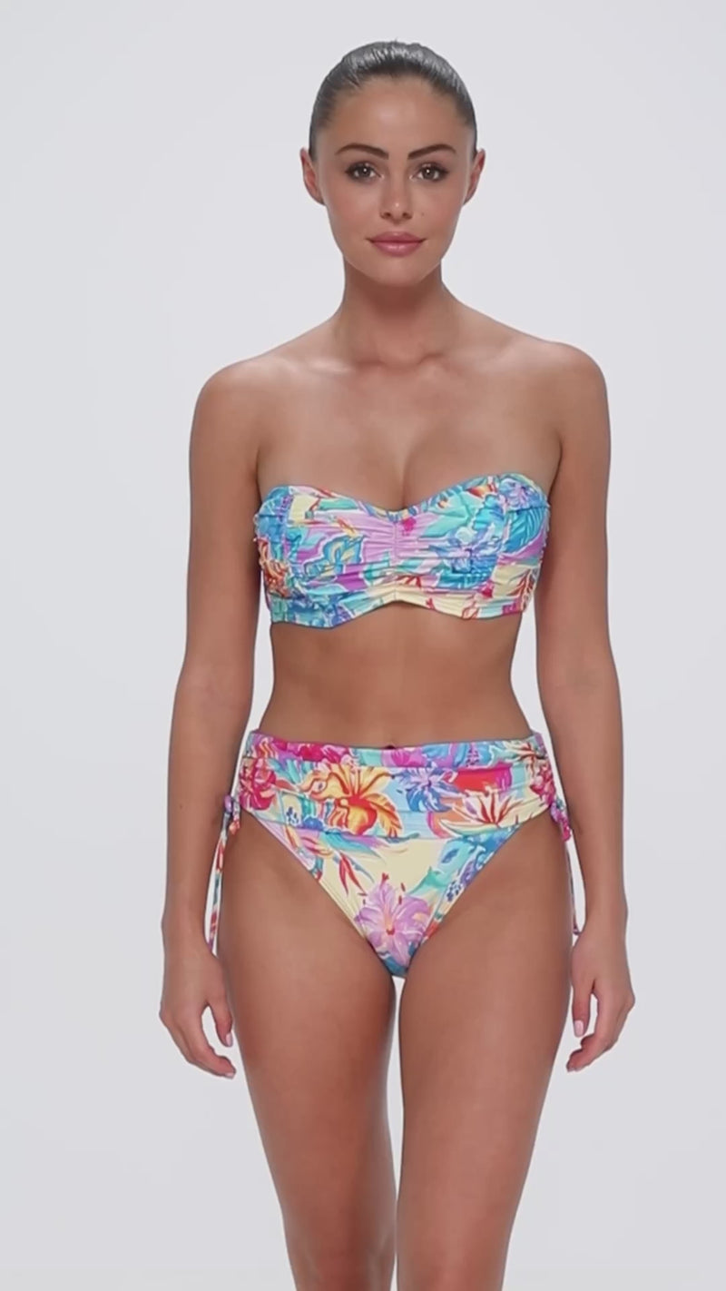 The Loretta Bandeau blends form and function. Flattering shirring along the seams sculpts your curves. Underwire gives confident support. Removable straps transform the look to a stunning-yet-secure bandeau in seconds. It's modern, minimal, and undeniably chic.